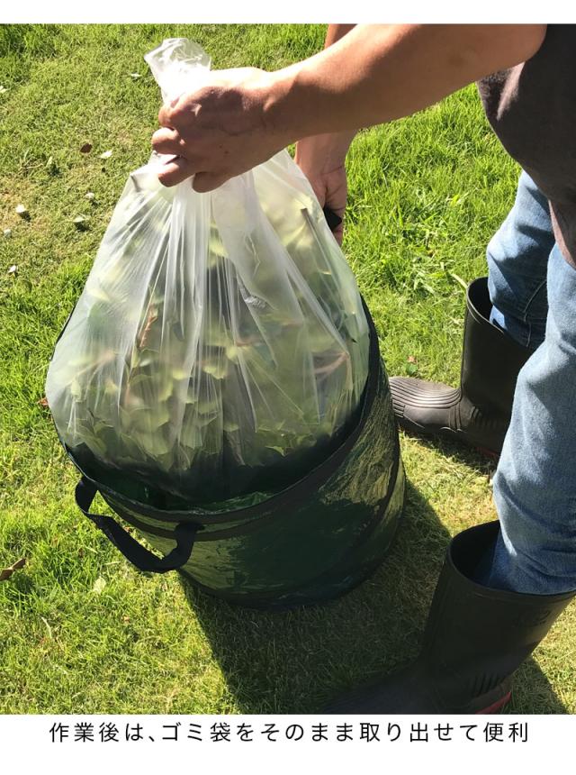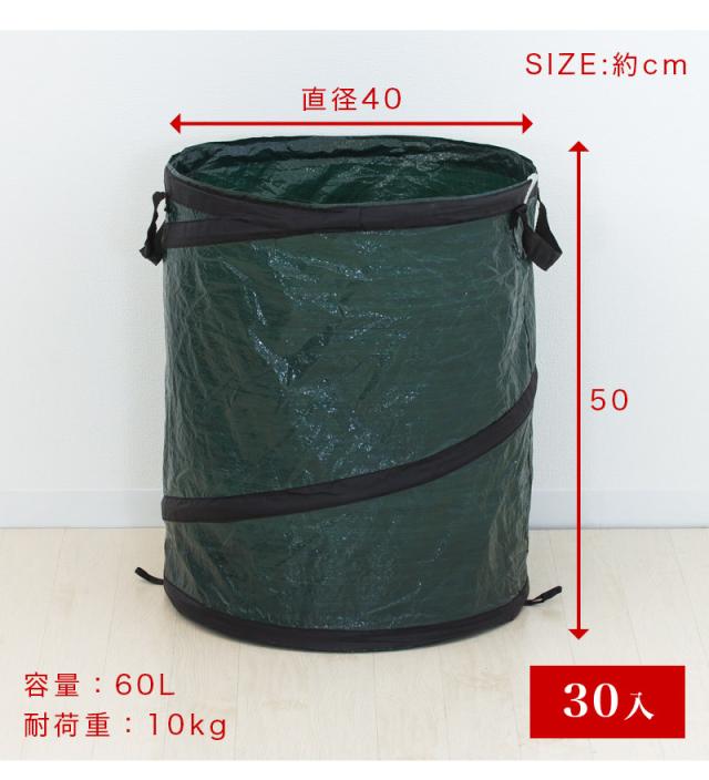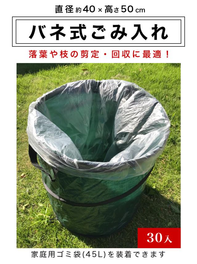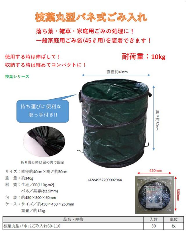 枝葉丸型バネ式ごみ入れ60-110(入数30) 直径40×高さ50cm 30入 30個入 落葉拾い 落葉集め 落葉 枝広い 庭掃除 造園作業 農作業 折りたたみ可能 丈夫 便利 簡易ゴミ箱