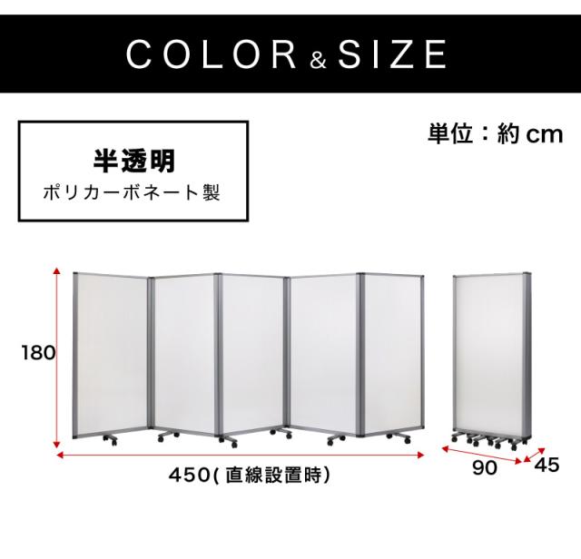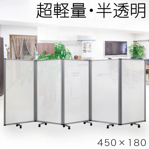 【半透明 90×5連】業務用 パーテーション キャスター付き 5連 パーテーション 仕切 幅450cm 高さ180cm ポリカーボネート 折りたたみ アルミフレーム 業務用 透過 間仕切り ついたて 可動式 固定 オフィス家具 コンパクト テレワーク WEB会議 飛沫防止 助成金 補助金 給付金