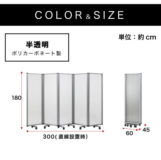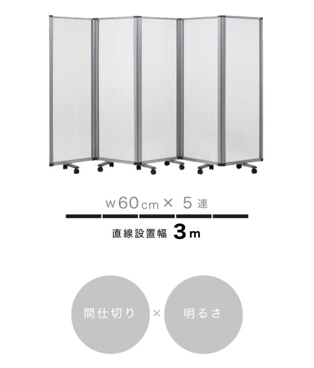 【半透明 60×5連】業務用 パーテーション キャスター付き 5連 パーテーション 仕切 幅300cm 高さ180cm ポリカーボネート 折りたたみ アルミフレーム 業務用 透過 間仕切り ついたて 可動式 固定 オフィス家具 コンパクト テレワーク WEB会議 ディスタンス 飛沫防止