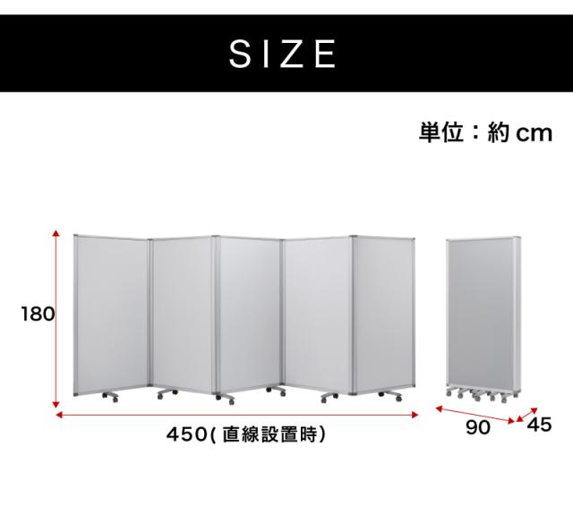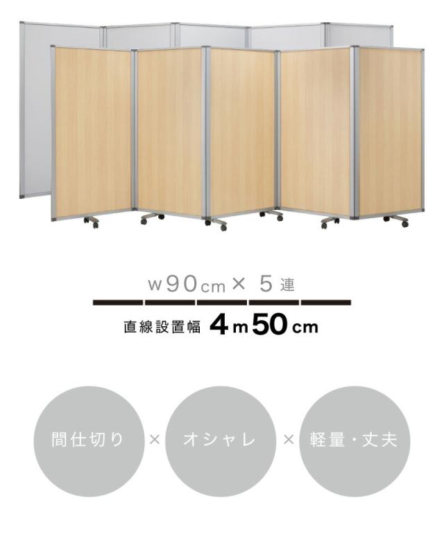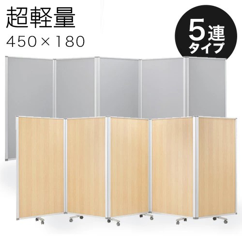 【90×5連】業務用 キャスター付き 5連パーテーション 仕切 幅450cm 高さ180cm グレー 木目 アルミフレーム オフィス用 業務用 押しピン 間仕切り ついたて 衝立て 可動式 オフィス家具 事務所 コンパクト テレワーク WEB会議 ソーシャルディスタンス 助成金 補助金 給付金