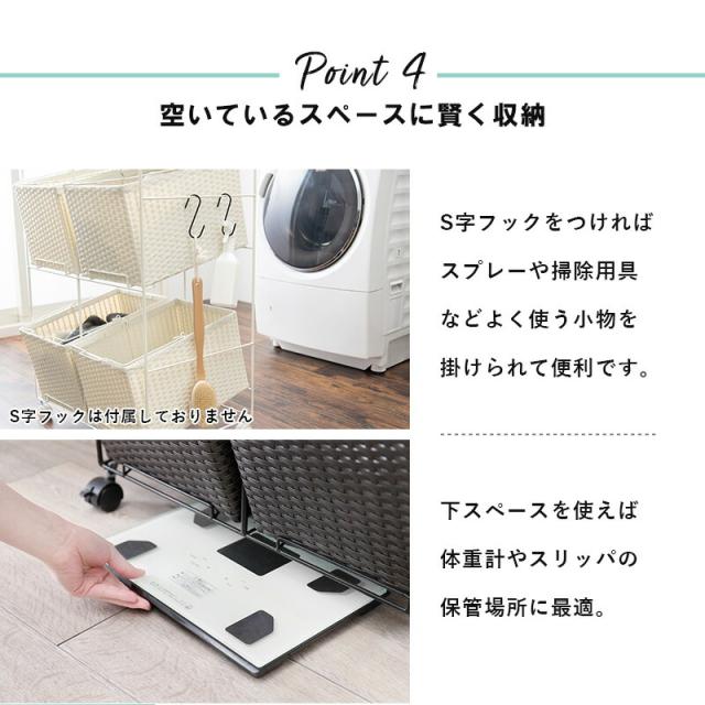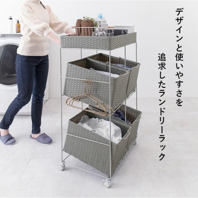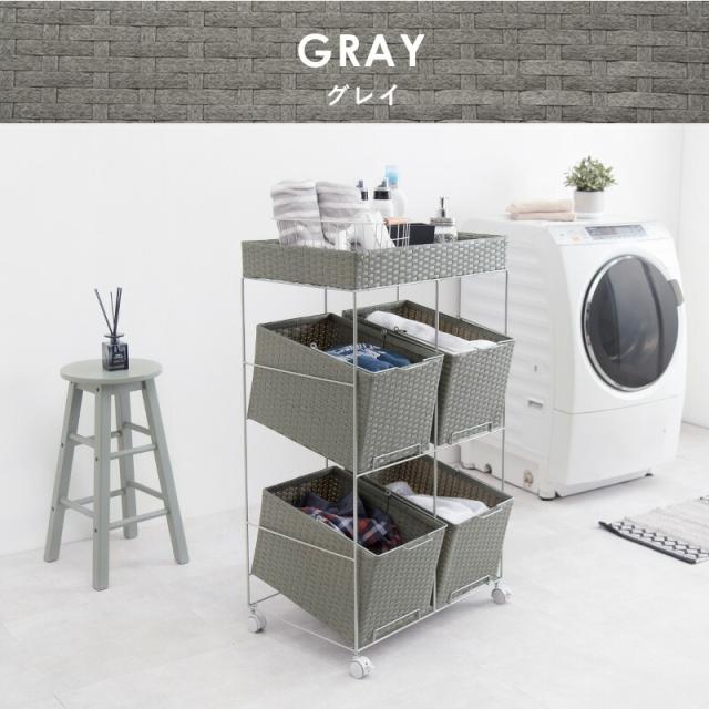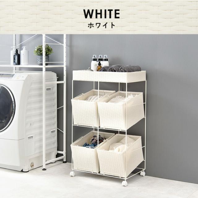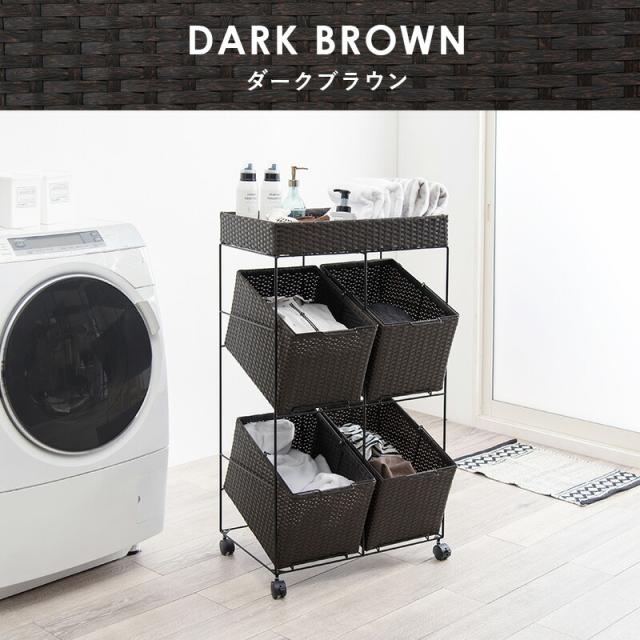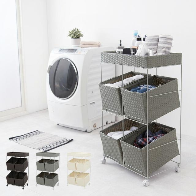 要組立 ランドリーラック 幅56 カゴ バスケット 4個 2段 ラタン調 棚付 取り外し可能 おしゃれ オシャレ ブラウン グレー ホワイト