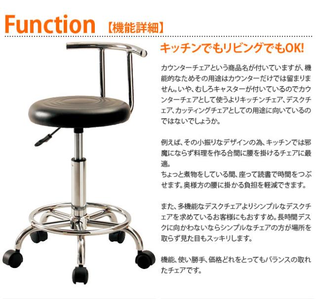 カウンターチェアという商品名が付いていますが、機能的なためその用途はカウンターだけでは留まりません。いや、むしろキャスターが付いているのでカウンターチェアとして使うよりキッチンチェア、デスクチェア、カッティングチェアとしての用途に向いているのではないでしょうか。
