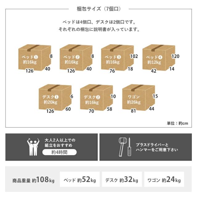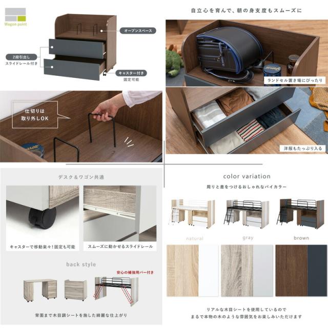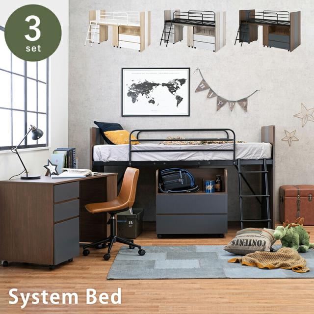 システムベッド システムデスク 子供部屋 一人暮らし ベッド ハイタイプ 机付き デスク付き 白 ホワイト ナチュラル ブラック ブラウン