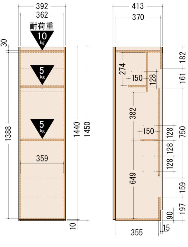 | 天板耐荷重10kg、棚耐荷重5kg、 |