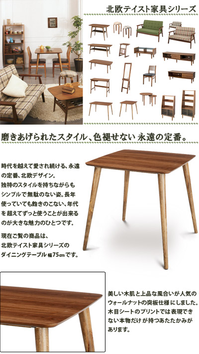 ダイニングテーブル 幅75cm ブラウン 木製 ノルディック 北欧 テーブル モダン 食卓 センターテーブル 天然木 リビングテーブル 机 デスク ダイニング家具 ミッドセンチュリー ウォールナット突板 塩系インテリア 送料無料 新生活