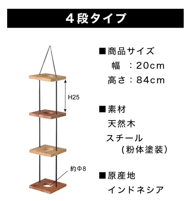 風合い豊かなアイアンと天然木でヴィンテージ感あふれるおしゃれな鉢立て。お気に入りの小さな草花や多肉植物などボタニカルな素材を室内に取り入れます。本体サイズ(cm)幅 20 X 奥行 20 X 高さ 84 cmその他のサイズプランター設置枠の直径8cm商品仕様素材:天然木 スチール(粉体塗装)生産国インドネシア更新日20171120 おしゃれ 鉢立て 幅25cm ヴィンテージ アイアン ハンギング 吊るす シャビー 通販