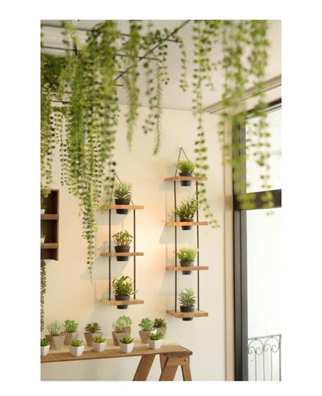| 風合い豊かなアイアンと天然木でヴィンテージ感あふれるおしゃれな鉢立て。お気に入りの小さな草花や多肉植物などボタニカルな素材を室内に取り入れます。 |