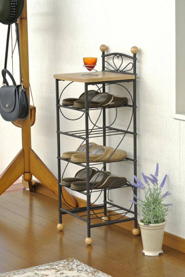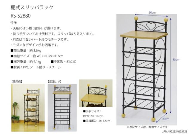 スリッパラック 棚式 スリッパ立て スリッパ入れ 玄関収納 スリッパスタンド 幅30 モダン ハートモチーフ スチール フクダクラフト