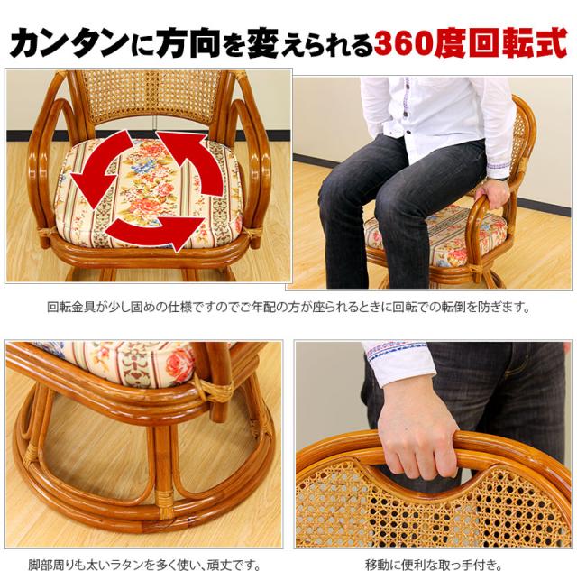 ラタンチェア 回転ロータイプ アジアン ラタン リラックス 籐家具 リラックスチェア ラタンチェア 籐 高座椅子 椅子 チェア ダイニングチェアー 籐 椅子 籐椅子 木製/薄型/通販/送料無料 【送料込み】 新生活 敬老の日ギフト 組立不要