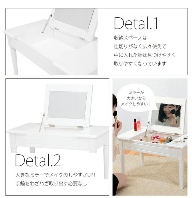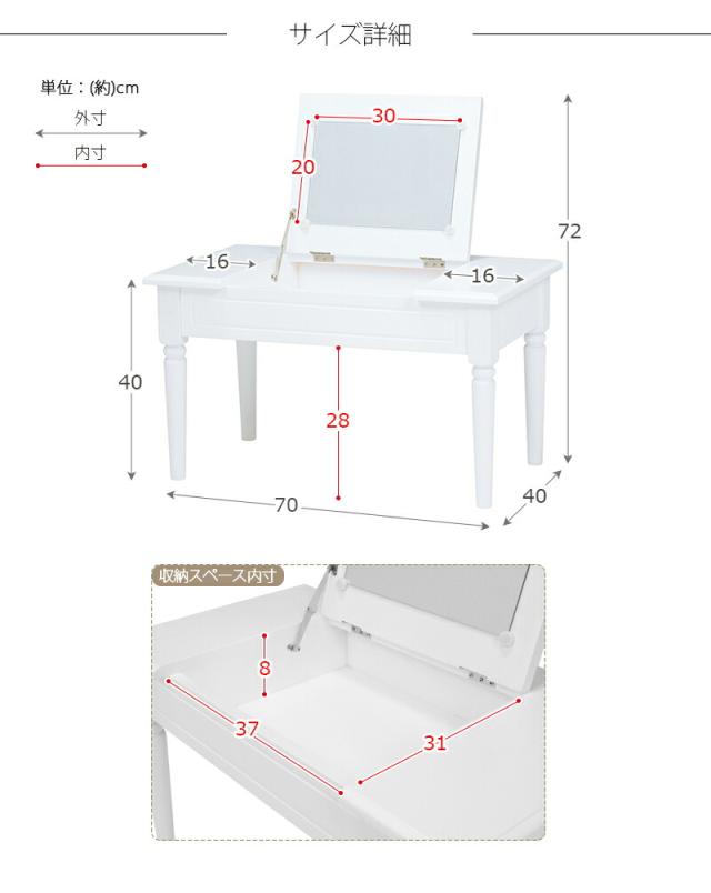 ドレッサー センターテーブル ローテーブル ミラー 鏡台 コスメテーブル 幅70cm MT-6558 コスメ テーブル 開閉式 座卓 1台2役 座卓 コンパクト フェミニン キュート 可愛い かわいい おしゃれ メイク ホワイト 白 姫系 家具