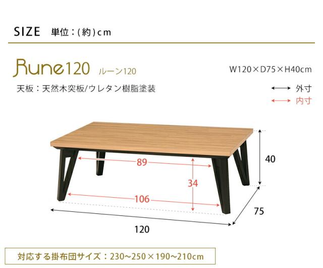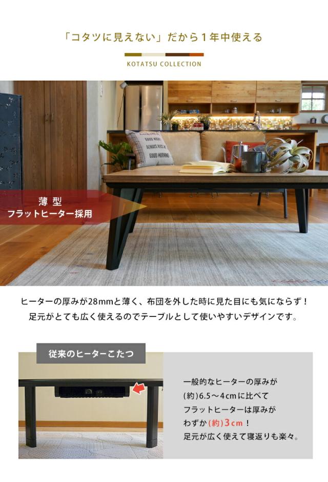 リビングコタツ 幅120cm ルーン120 ナチュラル ウォールナット こたつ コタツ 炬燵 おしゃれ 幅120 長方形 カジュアル 薄型 フラット ヒーター 木製 男前インテリア デザイン 一人暮らし リビング オールシーズン 年中 送料無料