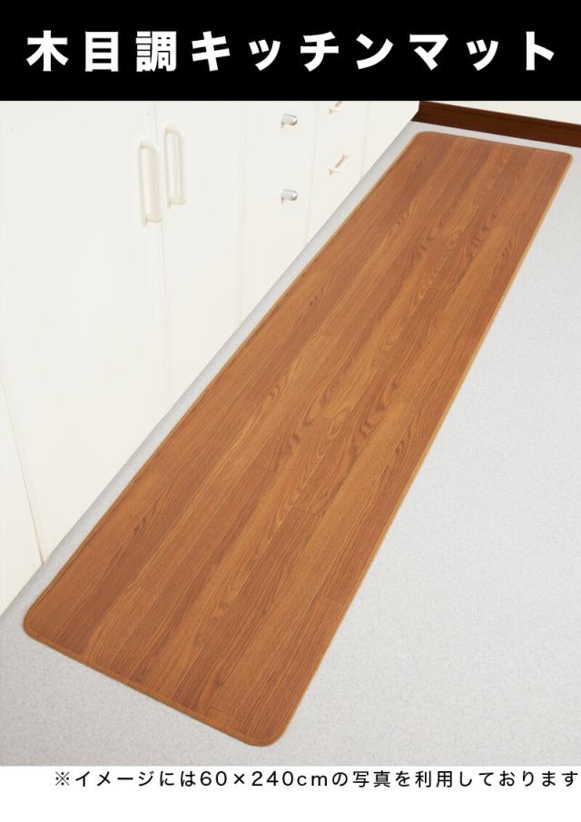 木目調 キッチンマット 幅60 x長さ240 裏面滑り止め加工 フローリングカーペット 木目 滑り止め キズ防止 汚れ防止 お手入れ簡単 ろうか敷き