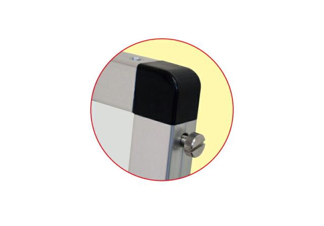 | 本体フレーム=22×25mmアルミ押し出し材/アルマイト仕上(シルバー)レール内寸5.5mm ●上部コーナー=樹脂 ●面板=マーカーボード(ホワイト)3mm厚 ●底板=アルミ複合板(黒)3mm厚※マグネット使用可能※差し替え用面板は、オプションから単品で購入頂けます。 ●面板有効サイズ=W281mm×H825mm ●面板サイズ=A3縦縦/A1縦半分(W297mm×H841mm) ●重量=4.2kg |