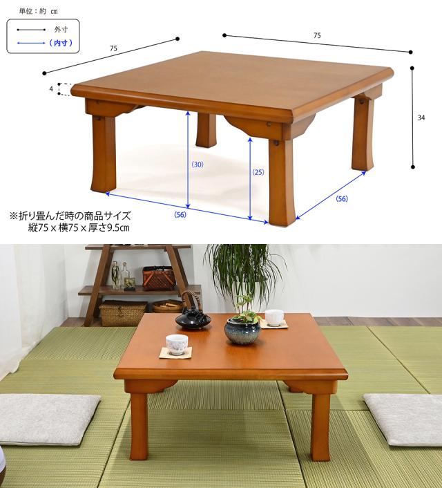 折脚角座卓 座卓 ローテーブル リビングテーブル センターテーブル キュービックテーブル 机 折り畳み 折れ脚座卓 木製 和室 完成品 75×75 フクダクラフト 完成品 組立不要