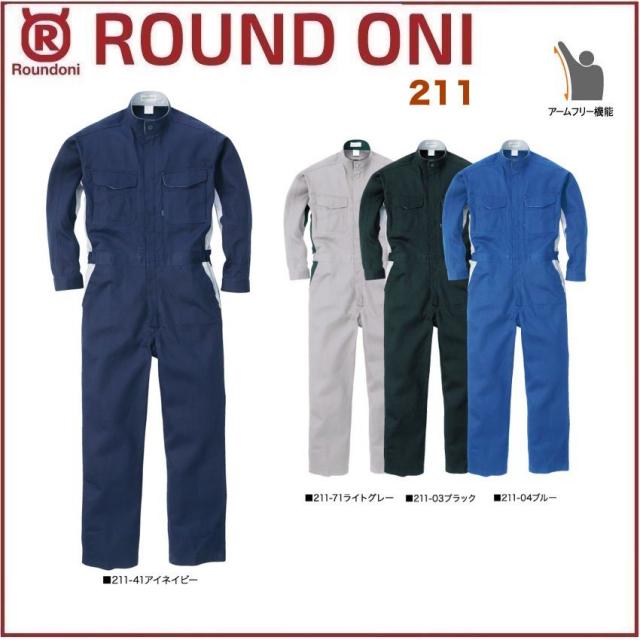 長袖ツナギ 211 ROUND ONI 211 丸鬼商店 (社名ネーム一か所無料)(すそ直しできます)