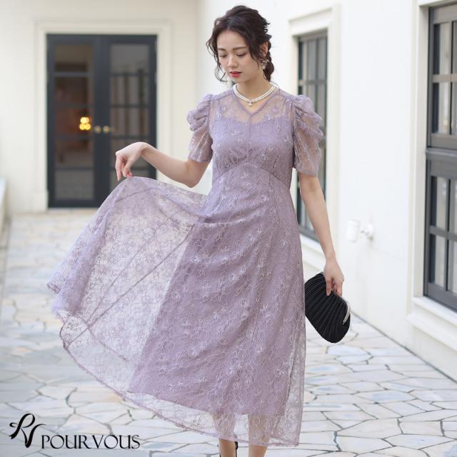 総レースとふわふわなギャザースリーブが特徴のワンピース。