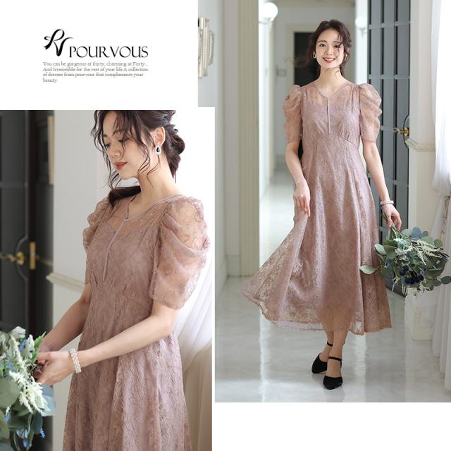 106221138 パーティードレス 結婚式 ワンピース フォーマルドレス ドレス 袖あり お呼ばれ 小柄 大きいサイズ 20代 30代 40代 春 夏 秋 冬 二次会 体型カバー aライン 50代 小さいサイズ 韓国 低身長 150cm お呼ばれ 上品 フォーマルワンピース 総レース おしゃれ 長袖 上品