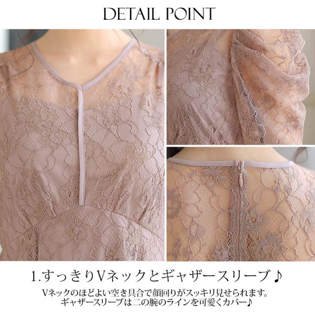 ギャザースリーブレースワンピース【106221138】10代・20代・30代・40代・50代ドレスワンピ・服装・ワンピース・フォーマルワンピ・ドレスカジュアル・ブランド・七分袖・長袖・袖あり・ロング・ミディアム・膝丈・薄手・厚手・無地・刺繍・花柄・脚長効果・伸縮性・キレイめ・着やせ・体型カバー・フレア・スタイルアップ・レース・リボン・ドレープ・小さいサイズ・3Lや4L・かっこいい、かわいい・即日発送・送料無料・結婚式・婚活・披露宴・顔合わせ・発表会・演奏会・二次会・同窓会・お呼ばれ・食事会・謝恩会・親族・七五三・お宮参り・冠婚葬祭・弔事・女子会・韓国・デート・入学式・卒業式・入園式・卒園式・ママ・ピアノ・マタニティー・セレモニー・セレブ・パーティー