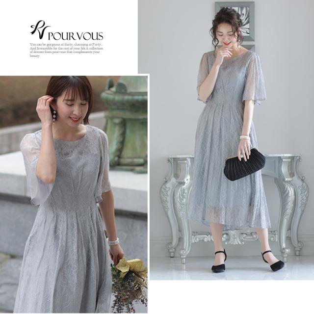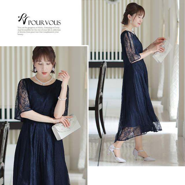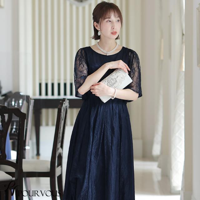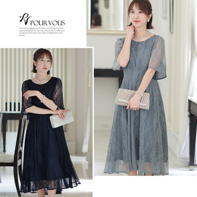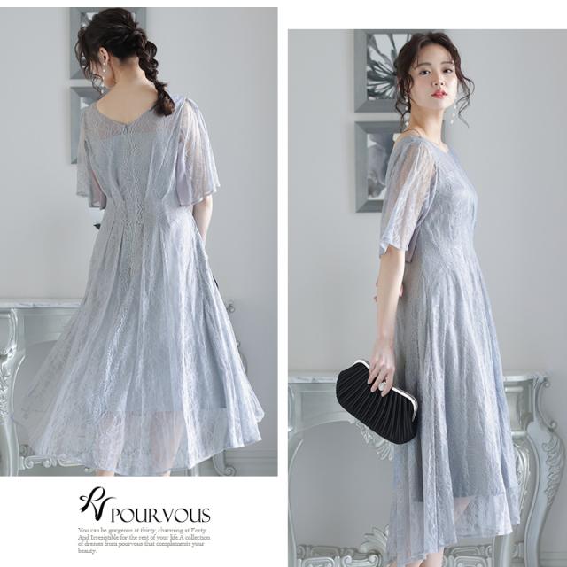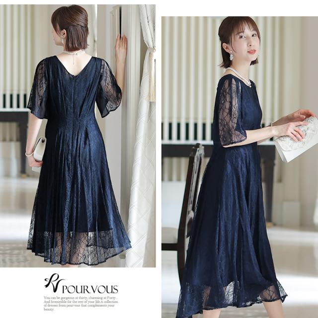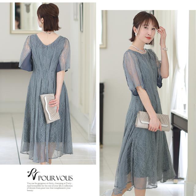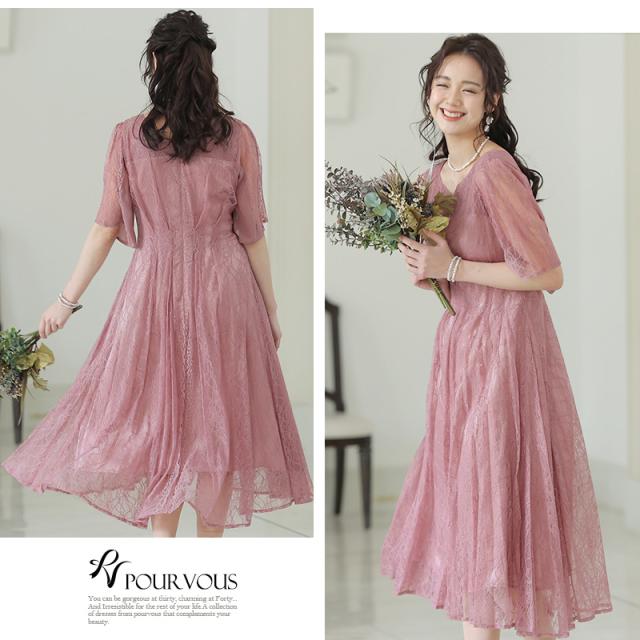 パーティードレス ワンピース 結婚式 お呼ばれ ドレス 服装 フォーマルドレス 大人 フォーマル 服 上品 大きいサイズ ミセス 他と被らない 20代 30代 40代 春 夏 秋 冬 パーティドレス 体型カバー ファッション 袖あり 袖付き 袖 総レース レース 半袖