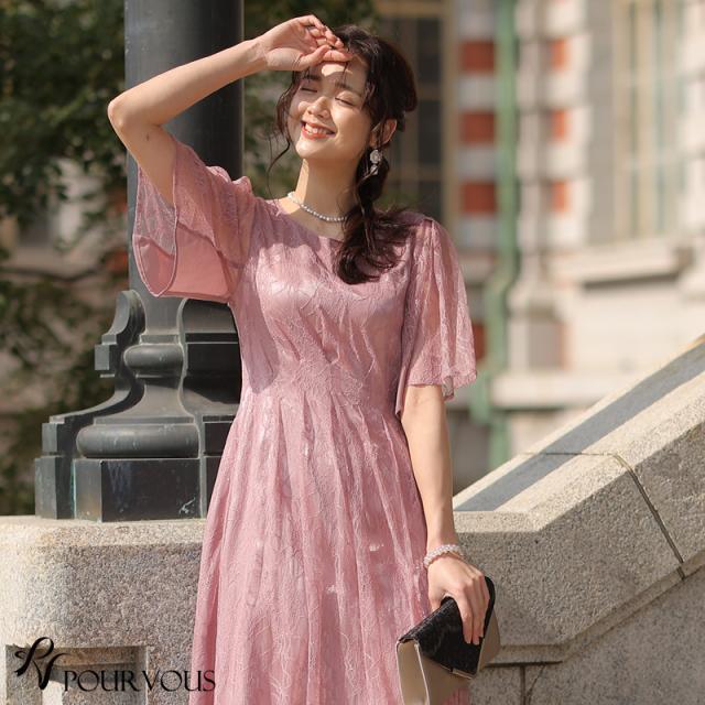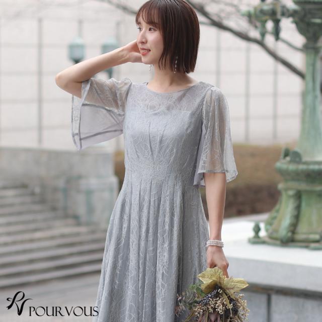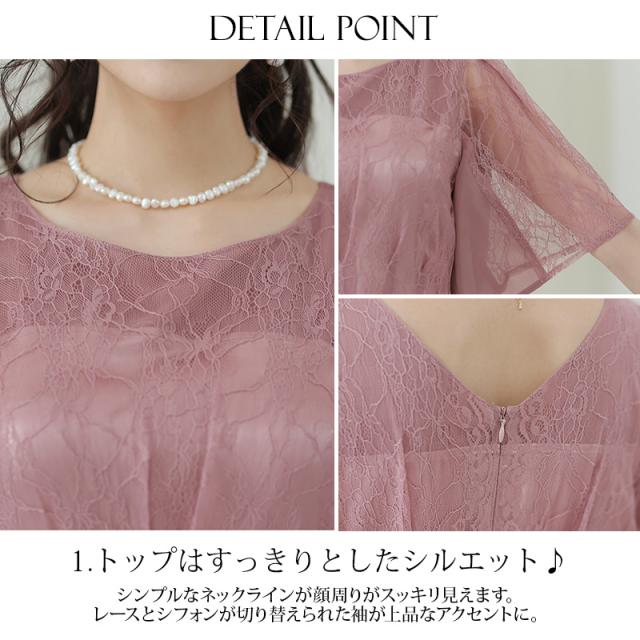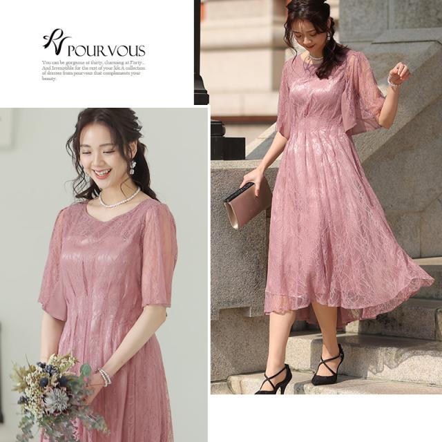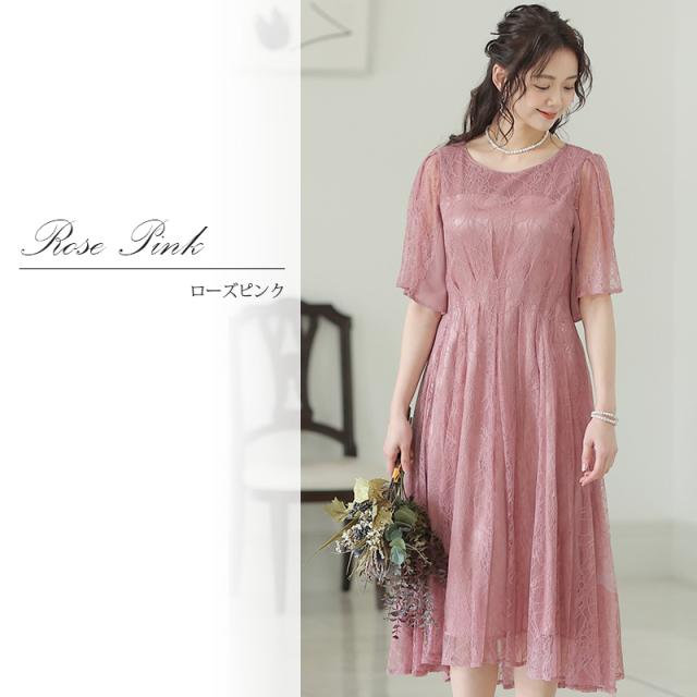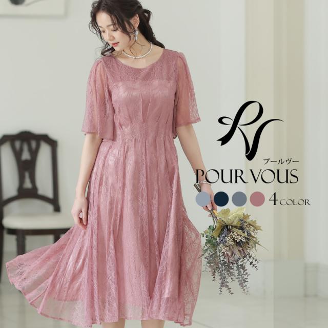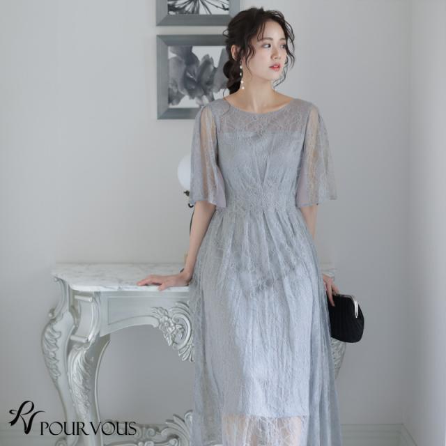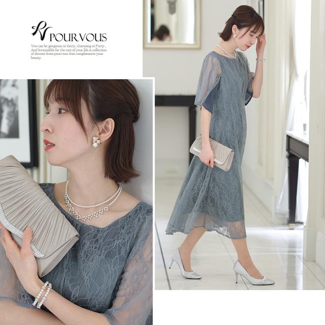 パーティードレス ワンピース 結婚式 お呼ばれ ドレス 服装 フォーマルドレス 大人 フォーマル 服 上品 大きいサイズ ミセス 他と被らない 20代 30代 40代 春 夏 秋 冬 パーティドレス 体型カバー ファッション 袖あり 袖付き 袖 総レース レース 半袖