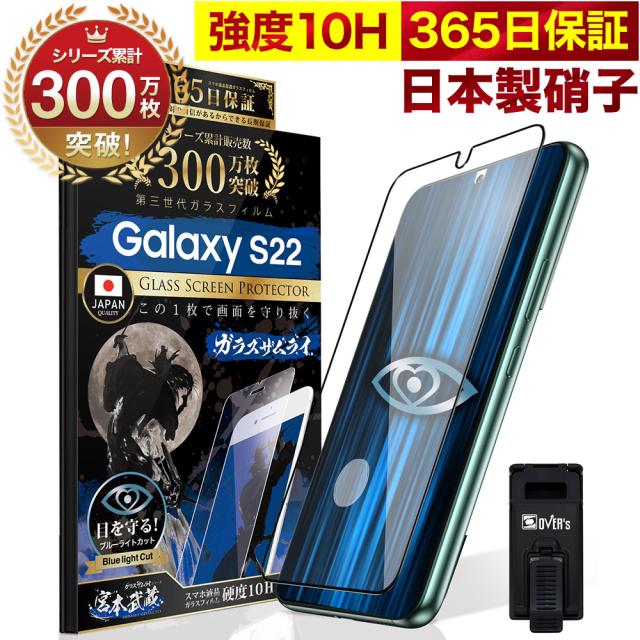 Galaxy S22 SC-51C SCG13 ガラスフィルム 全面保護フィルム 指紋認証対応 ブルーライト32%カット 目に優しい ブルーライトカット 10H ガラスザムライ フィルム 液晶保護フィルム OVER`s オーバーズ 黒縁 TP01