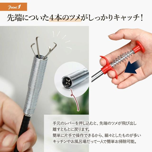 パイプクリーナー 便利 配管 排水溝 簡単掃除 60cm 4本爪 つまり 詰まり 髪の毛 トイレ キッチン お風呂 台所 洗面台 水回り 浴室 大掃除 ハンド レバー 掃除 家庭 会社 パイプ 汚れ あると便利 もしものために 高齢者でも簡単 髪詰まり 握るだけ agesugi_snk