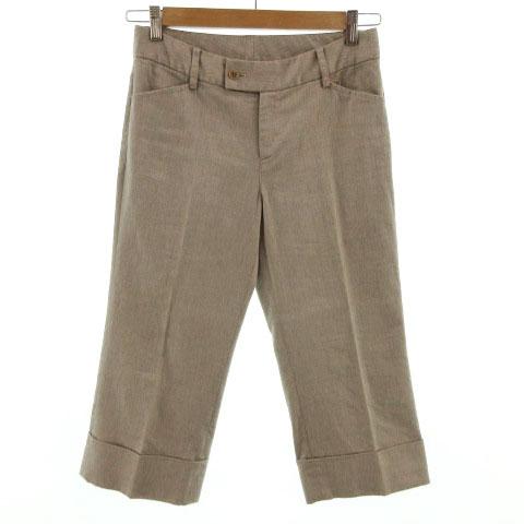 【中古】エミスフェール HEMISPHERES パンツ クロップド 裾ダブル リネン混 日本製 ヘリンボーン ベージュ 38
