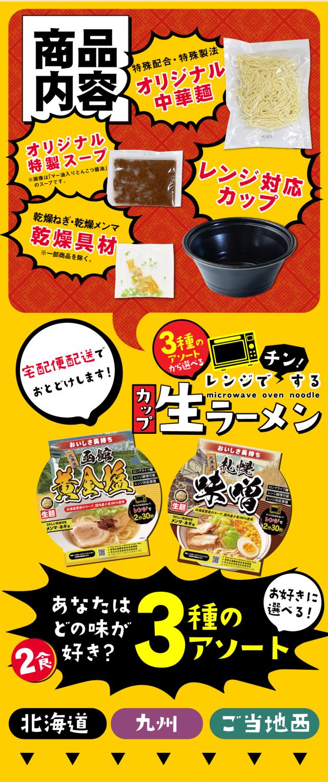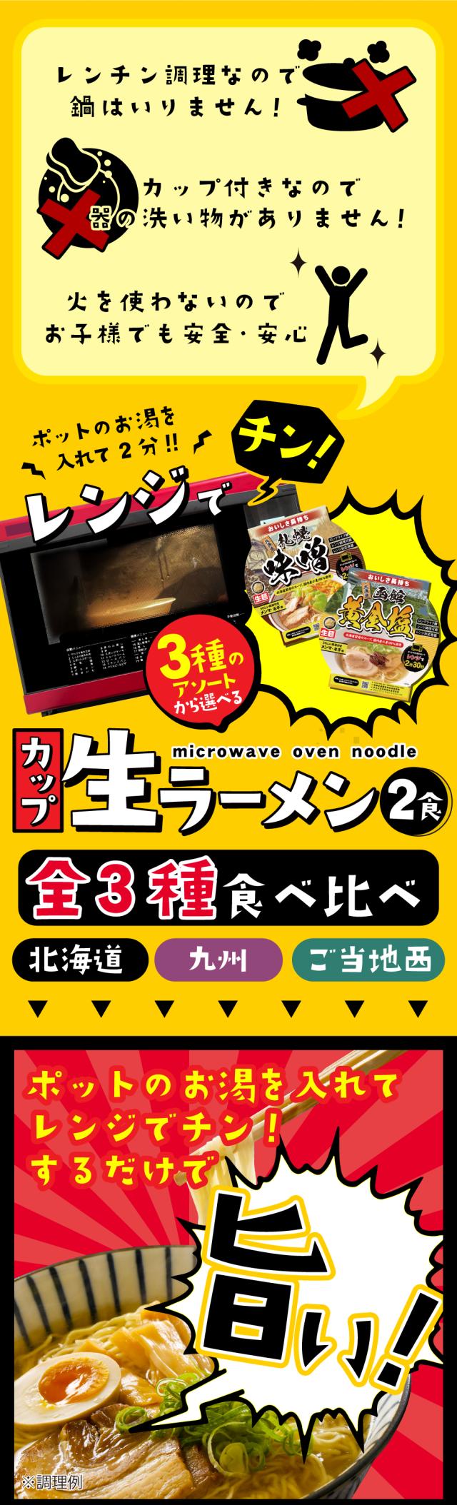 2個購入で+1 レンチンラーメン 2種2食 北海道 九州 ご当地西 送料無料 (北海道・沖縄・離島+1500円) 味噌 黄金塩 豚骨 マー油 背脂 ブラック