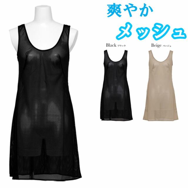 ロング スリップ ペチコート 夏 メッシュ SUBROSA 7518 85cm丈 レディース ワンピース ランジェリー インナー 涼しい 浴衣 透け防止 ムレ防止 ベージュ 黒 日本製 M L LL (04997)