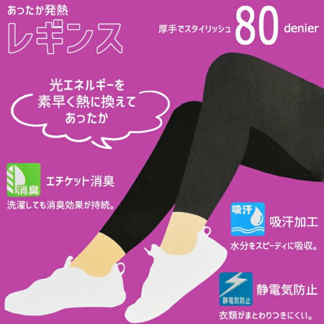 【2点以上お買い上げで送料無料】レギンス レディース ATSUGI あったか発熱 10分丈 80デニール SPT6858 単品 暖かい 吸汗 アツギ atsugi 秋 冬 スパッツ(05002)