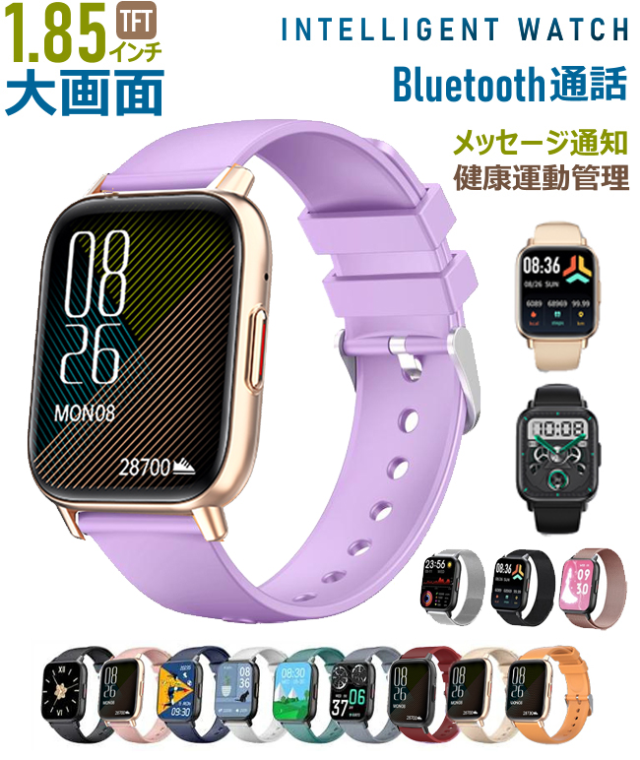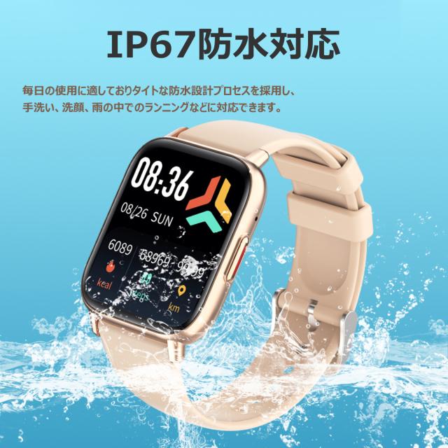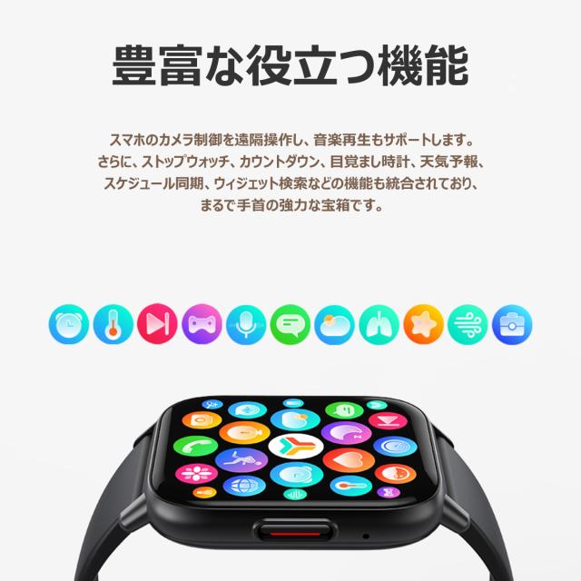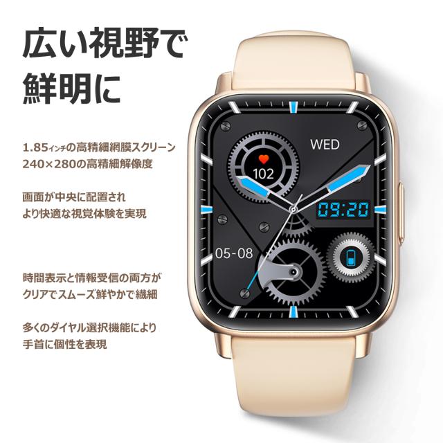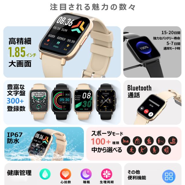 スマートウォッチ 日本製センサー 体温測定 血圧 天気予報 1.85インチ大画面 IP67防水 活動量計 心拍計 歩数計 腕時計 SMS通知 日本語対応
