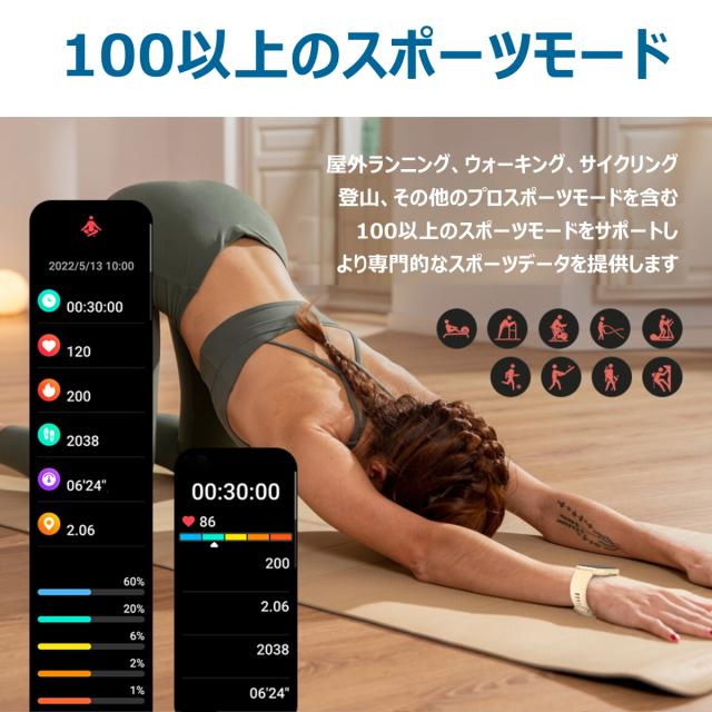 スポーツモードで歩数、カロリー消耗、距離、心拍数のデータを記録し、合理的に運動量、運動時間を管理することができます。【健康管理】