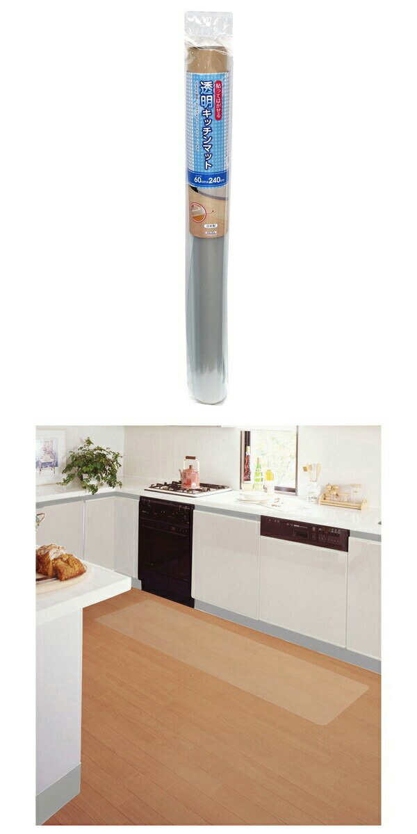 明和グラビア 透明 キッチンマット ZKM-6024 60cmx240cm 貼ってはがせる 目立たない