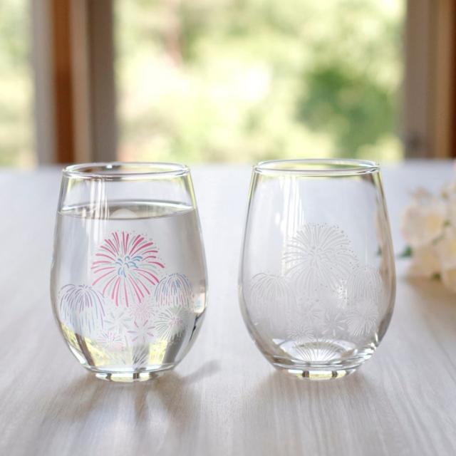 丸モ高木陶器 グラス 花火 色が変わるグラス 冷感グラス 冷感花火 天開グラス 2個セット ペアグラス 100ml×2 日本製