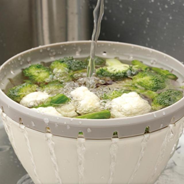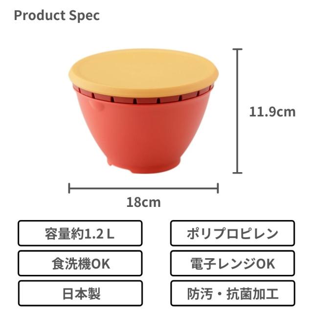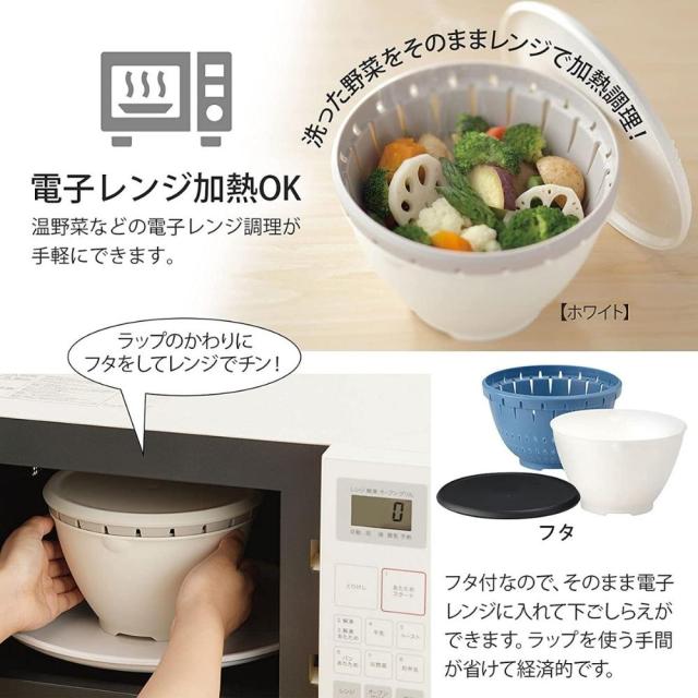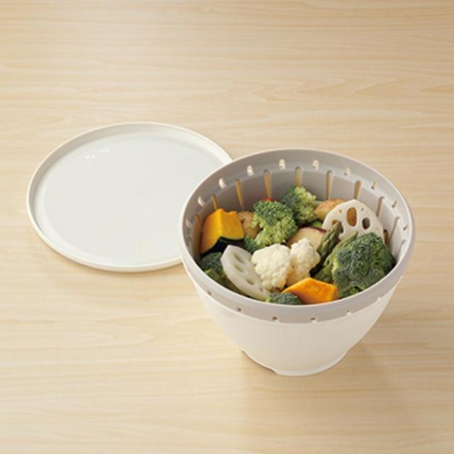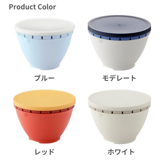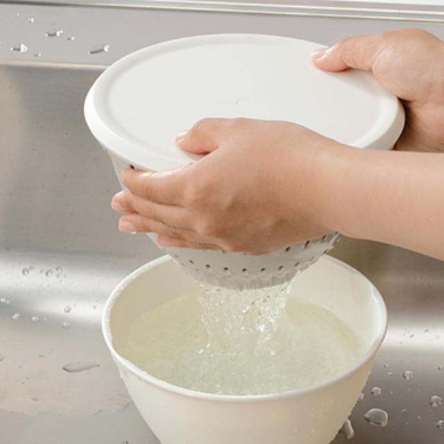 一連の作業をこれ一つで。ボール、コランダー、フタのセットです。ラップを使わなくて済むのでごみの減量に!