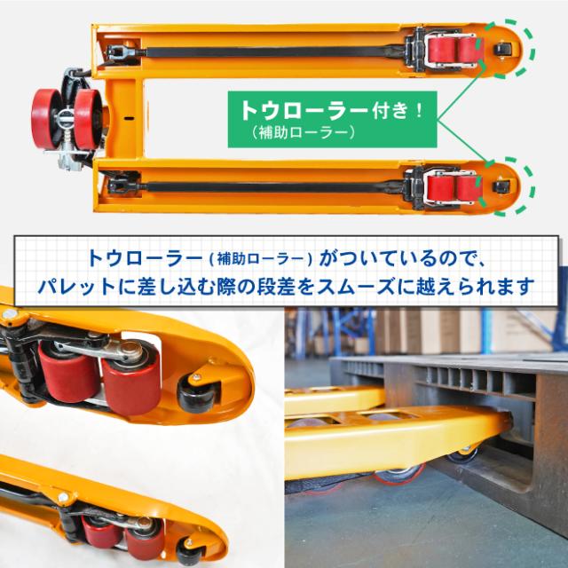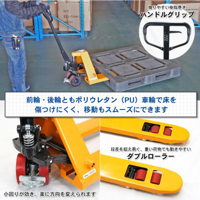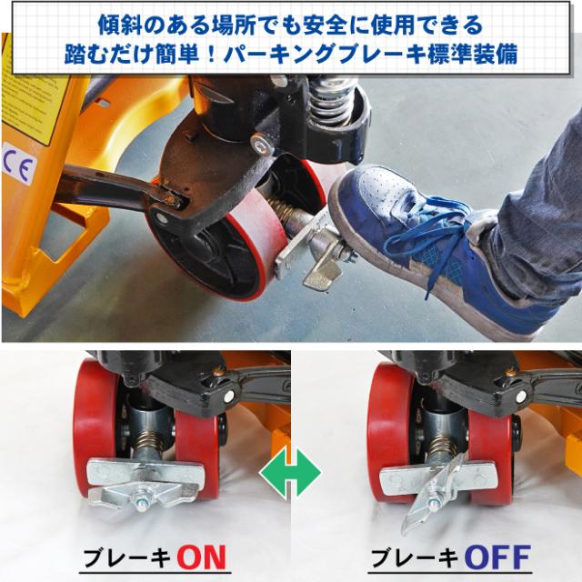 ハンドリフト 2500kg パーキングブレーキ付き ダブルローラー フォーク長さ1100mm 全幅550mm 高さ75mm ハンドパレット 業務用 KIKAIYA