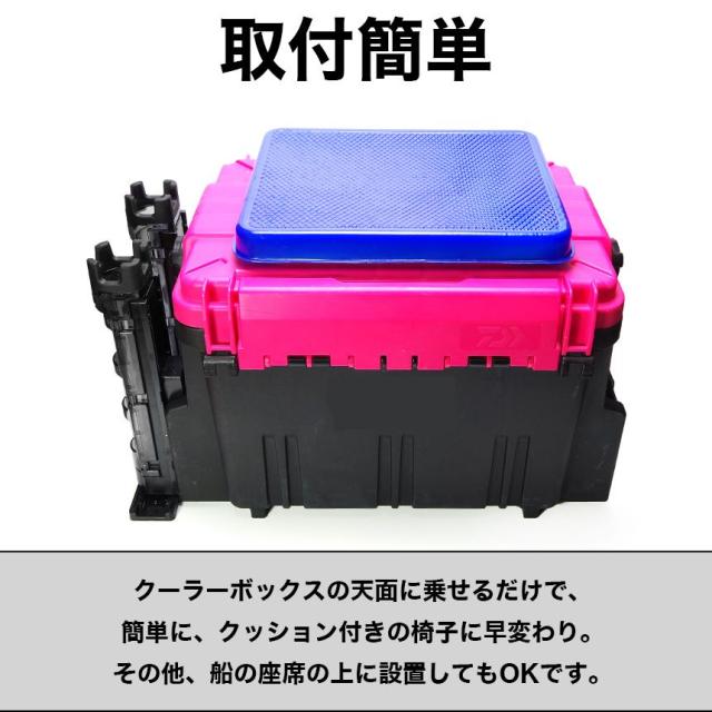 クーラーボックスの天面に乗せるだけで、簡単に、クッション付きの椅子に早変わり。
