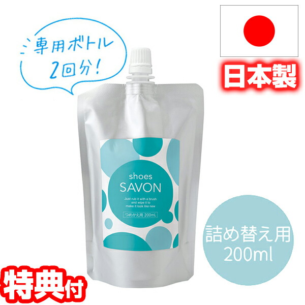 shoes SAVON シューズシャボン つめかえ用200mL 水不要 日本製 靴用洗剤 スニーカークリーナー 靴用シャンプー シューズクリーナー スニーカーシャンプー 拭くだけ 綺麗 スニーカー シューズ 洗剤 ケア 汚れ 落とし ドライ クリーニング 詰替え