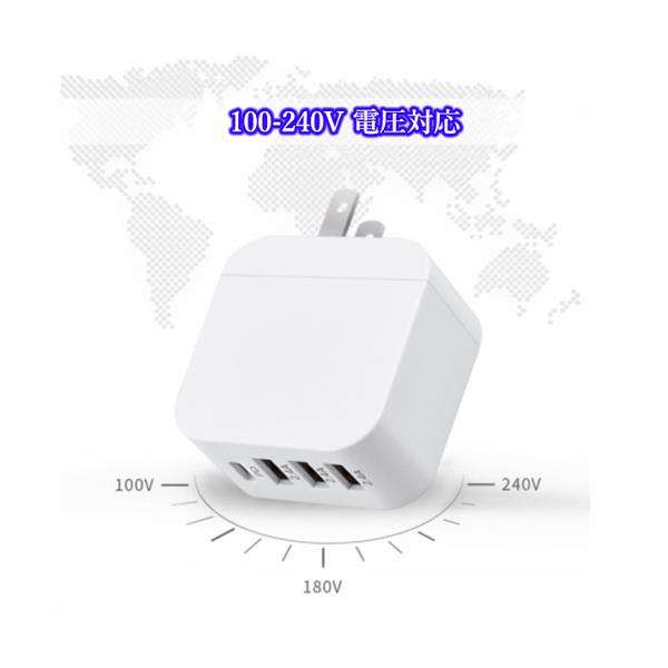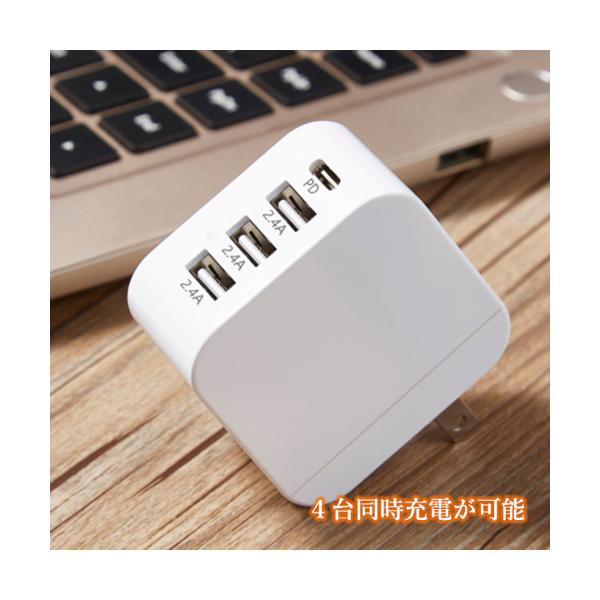 充電器 PD 4ポート USB ACアダプター 充電アダプタ Type-C 急速充電 コンセント iPhone Android ホワイト (管理S) 送料無料