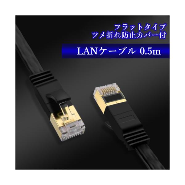LANケーブル 0.5m フラット 爪折れ防止 有線LAN インターネット ネット回線 光 ブラック (管理S) 送料無料