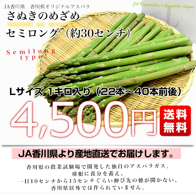 香川県より産地直送 JA香川県アスパラ さぬきのめざめ セミロング(約30センチ)Lサイズ 1キロ入り 送料無料 丸亀市他 30センチアスパラガス【発送時期:カート内に記載しております】