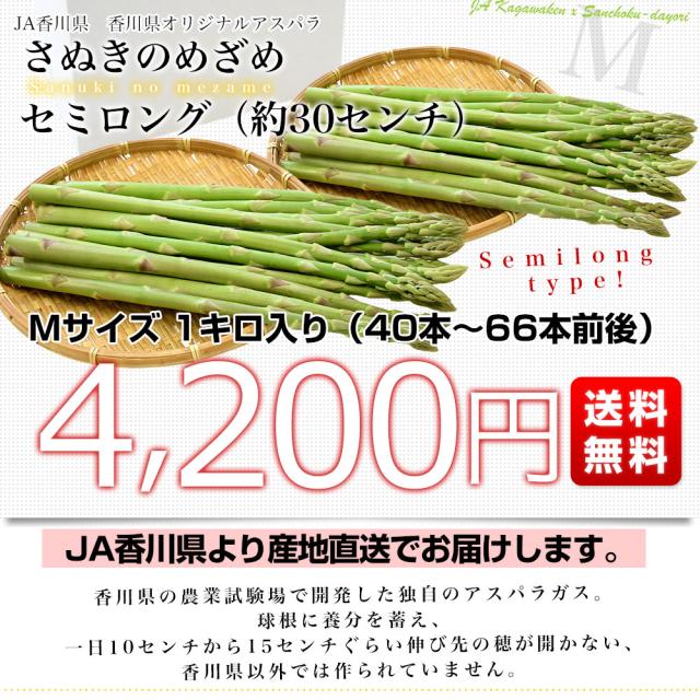 香川県より産地直送 JA香川県アスパラ さぬきのめざめ セミロング(約30センチ)Mサイズ 1キロ入り 送料無料 丸亀市他 30センチアスパラガス【発送時期:カート内に記載しております】