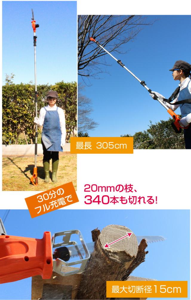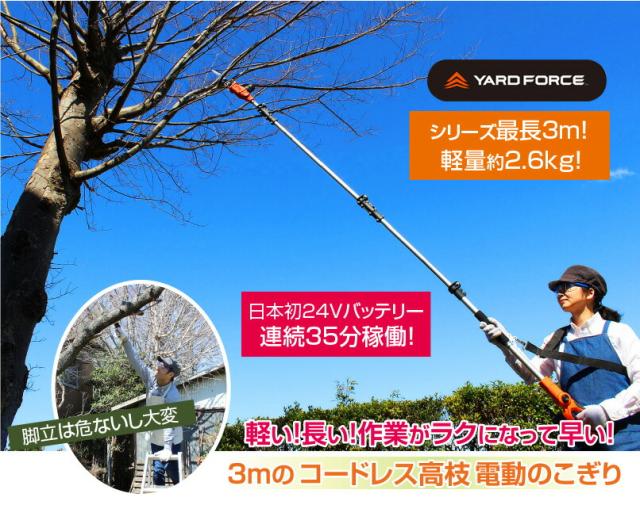 YARD FORCE コードレス 高枝電動のこぎり ライト 3m 【 高枝 のこぎり 充電式 バッテリー式 高枝切りチェーンソー チェーンソー 高枝切り 電動 ヤードフォース 鋸 のこぎり 】
