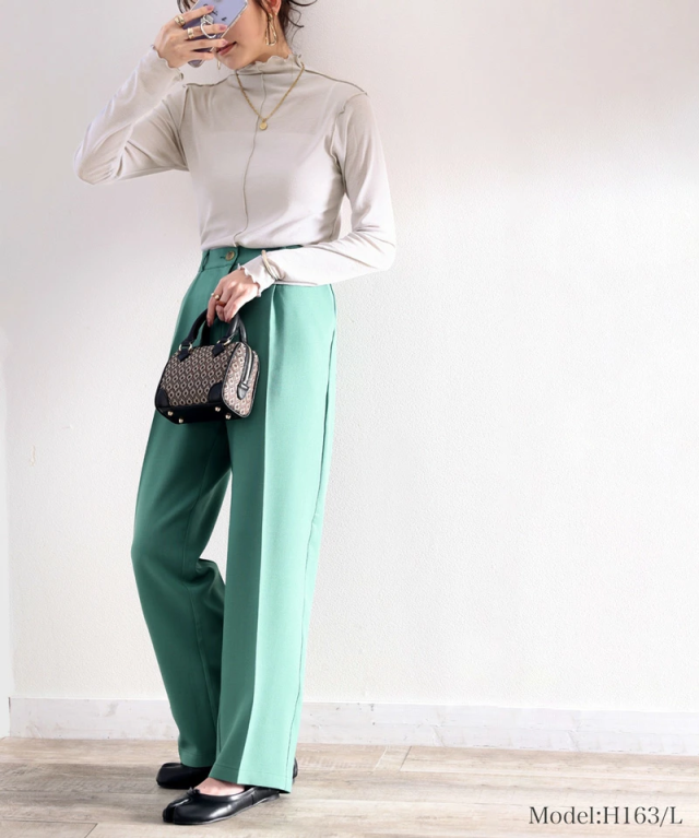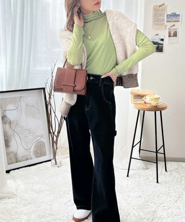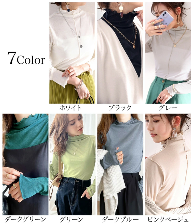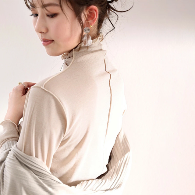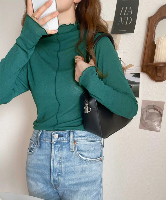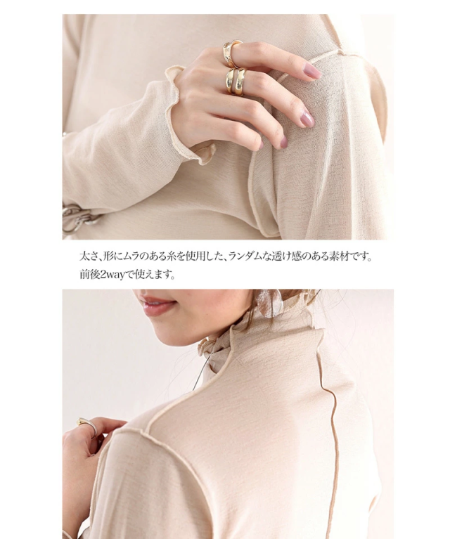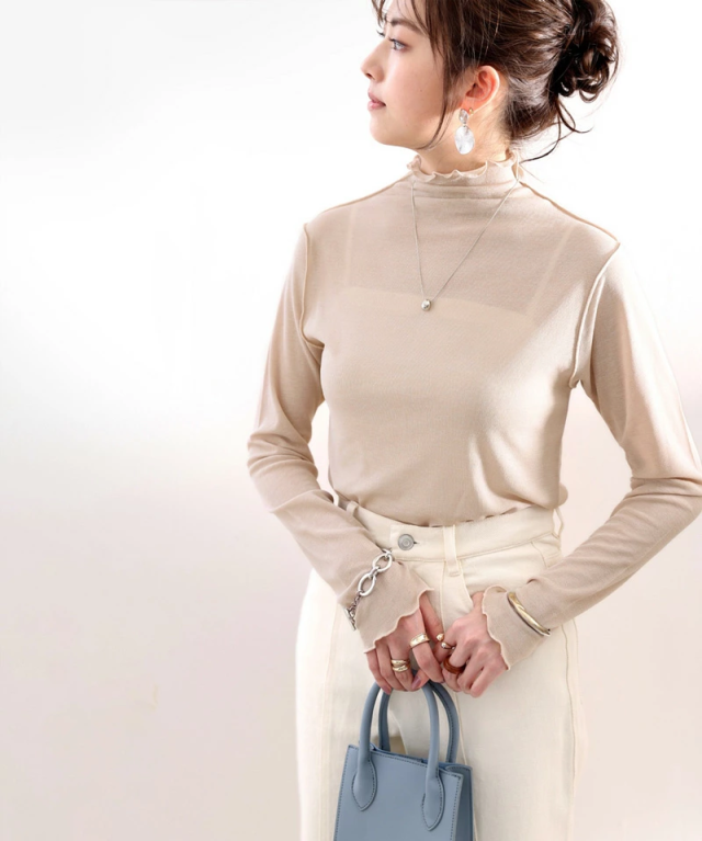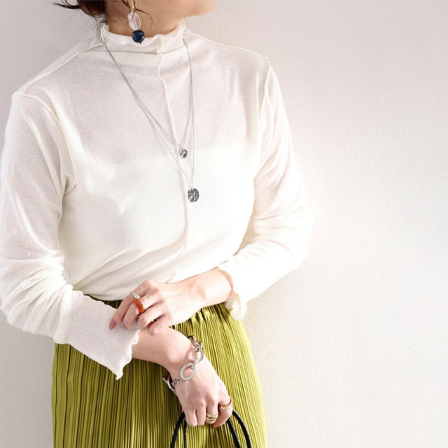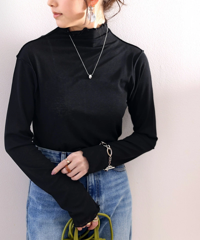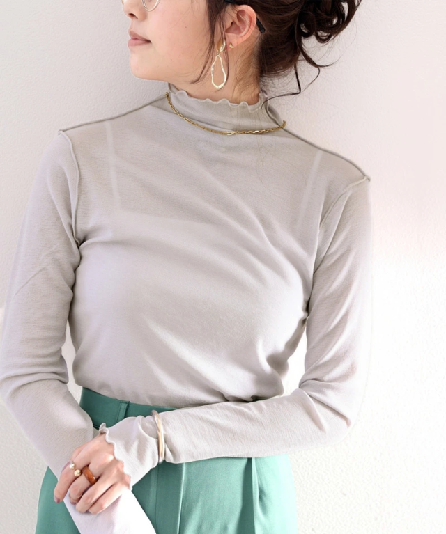透け感のあるシンプルなハイネックトップスですが