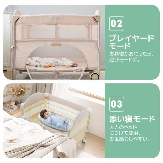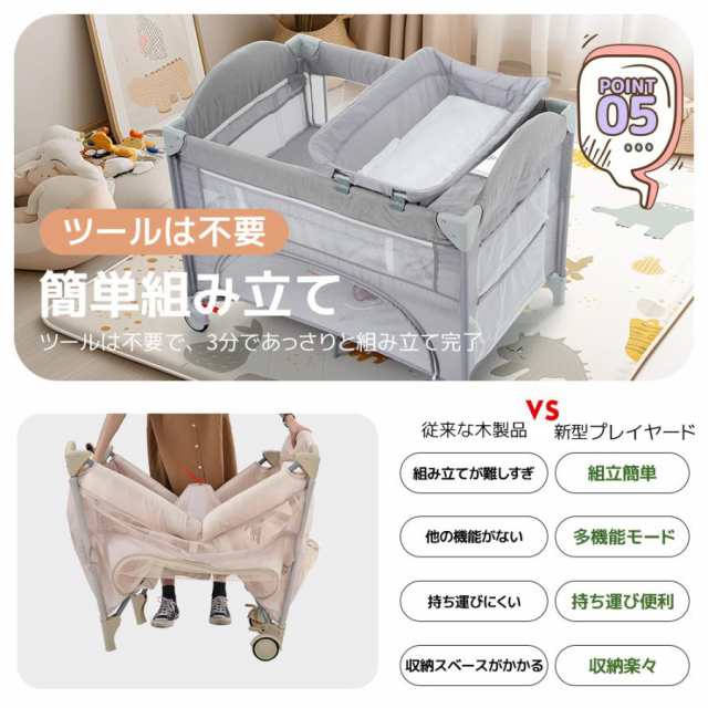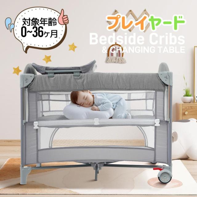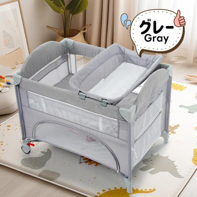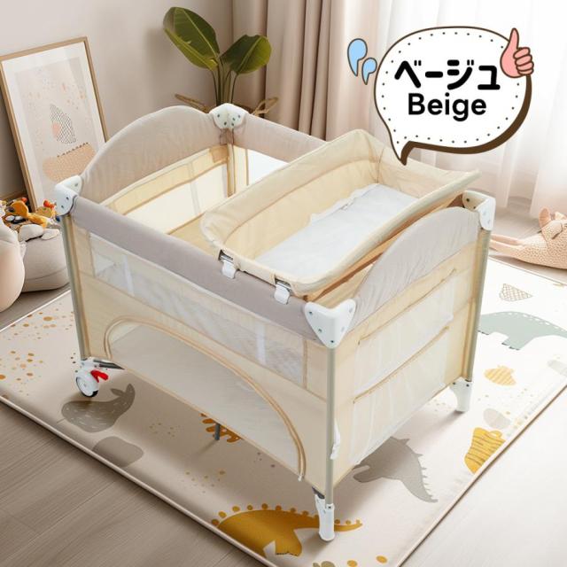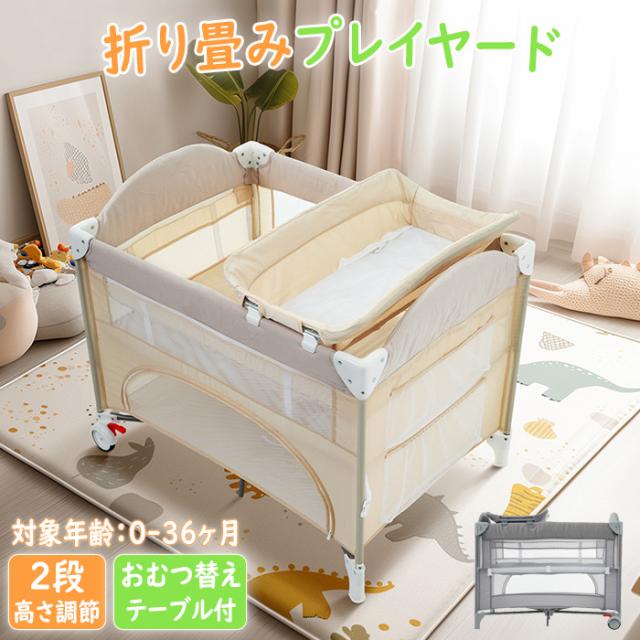 「クーポン配布中」折りたたみ ベビーベッド プレイヤード お昼寝ベッド ベビーサークル ベッド おむつ替えテーブル付 お昼寝マット付 キャリーバッグ付 組立簡単 収納便利 マットレス付 新生児 出産祝い お誕生日お祝い プレゼント
