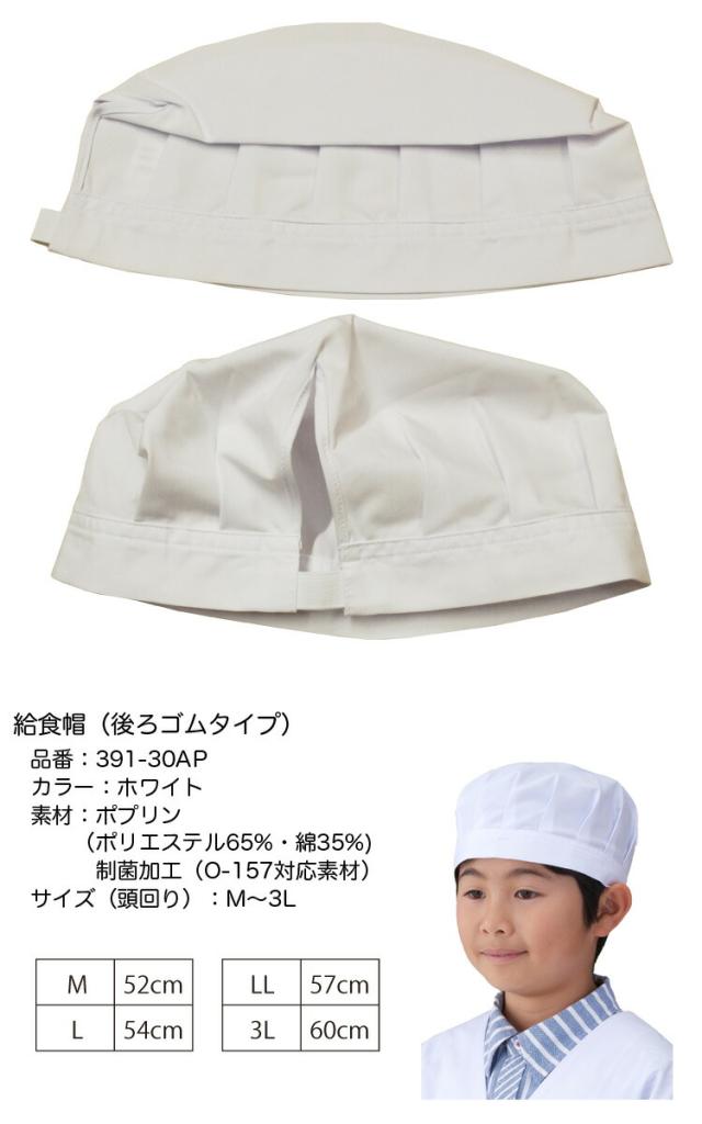 【男女兼用】アプロンアパレル 391-30ap 給食帽(後ろゴムタイプ)白色 給食着 ホワイト M~3L
