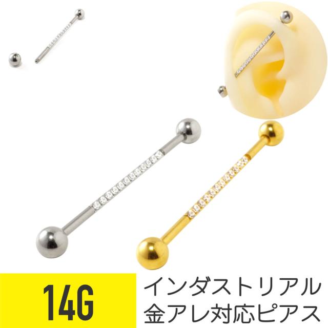 ジュエル インダストリアル 14G サージカルステンレス ジルコニア ジュエル シルバー ゴールド イヤーロブ ヘリックス 軟骨ピアス ボディピアス