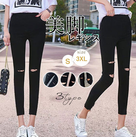 ポイント超超祭 レギンスパンツ ボトムス スキニー レディース リラックス ハイウエスト ダメージ加工 オフィス ロング丈 オシャレ 美脚 楽ちん スリム 無地