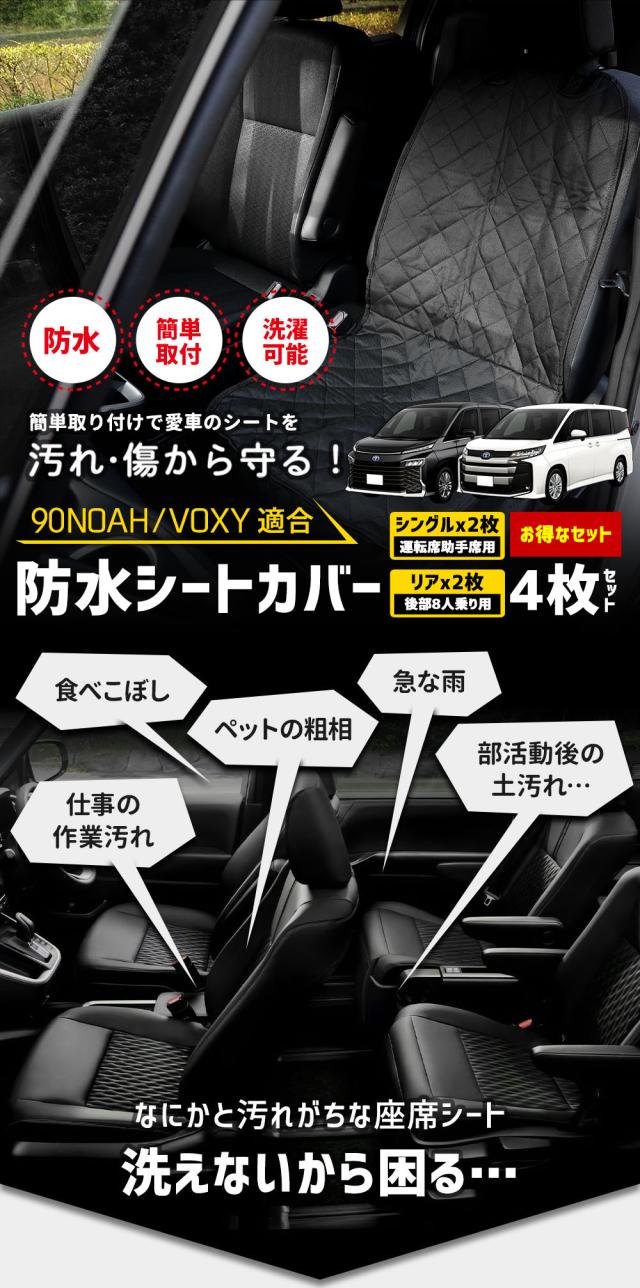 [只今タイムセール開催中]90系 ノア ヴォクシー 8人乗り 適合 シートカバー シングル リア [お得な4枚セット] 防水 運転席助手席2枚 後部座席2枚 ペットシート 犬 汚れ 90 NOAH VOXY カスタム パーツ アクセサリー[1]