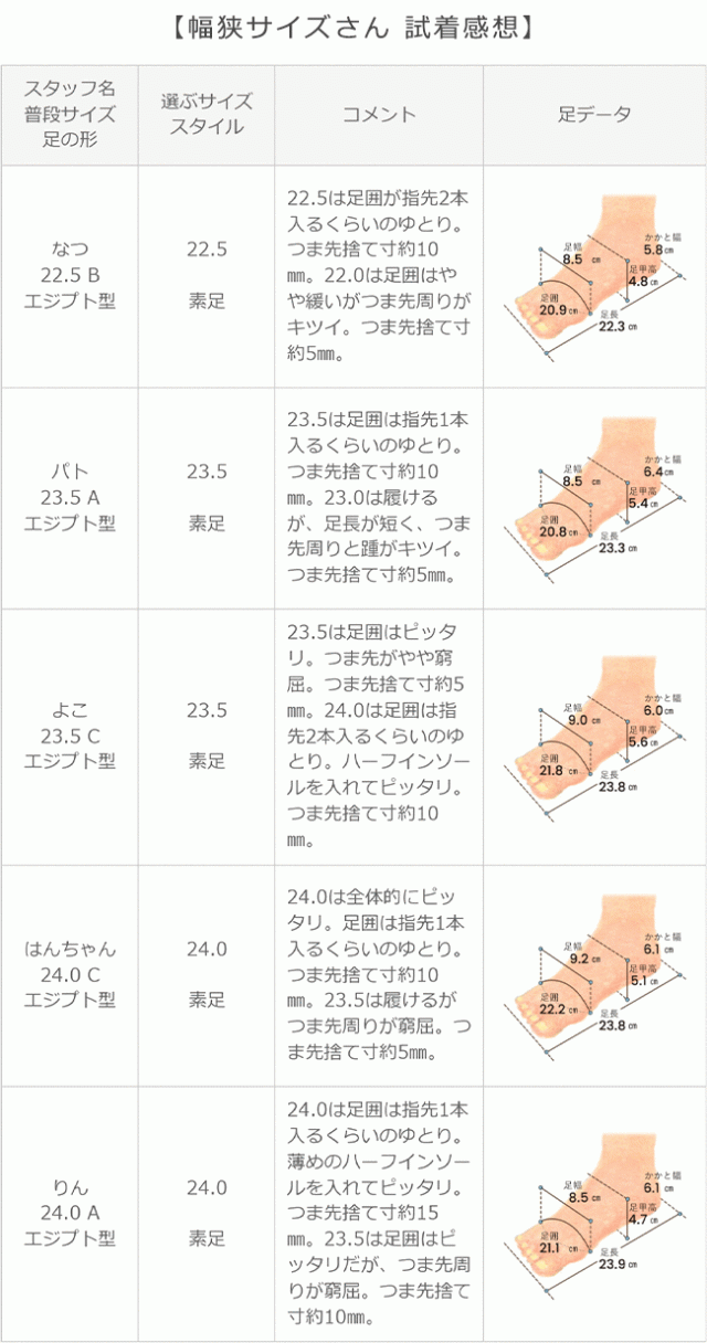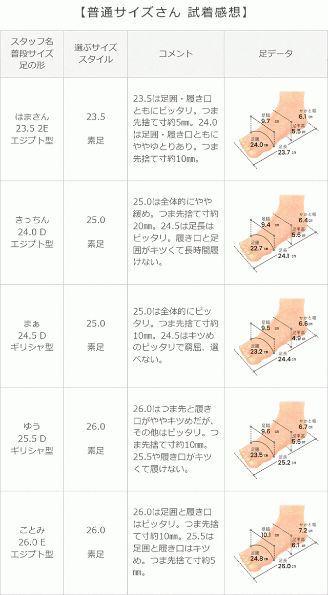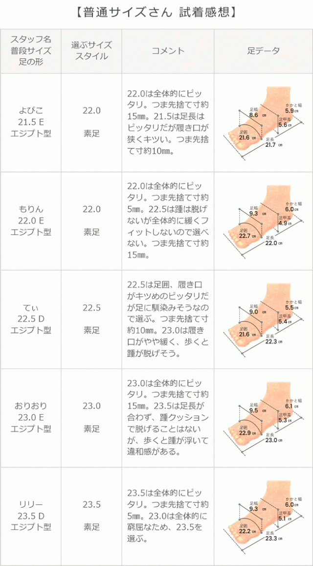 ※足の形には個人差があります。スタッフ試着感想は参考程度にお考え下さい。
